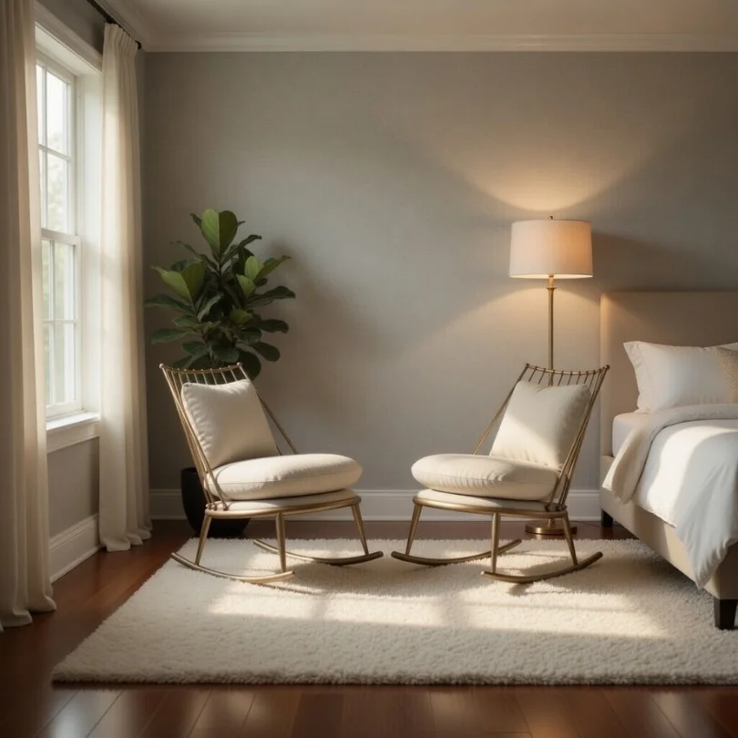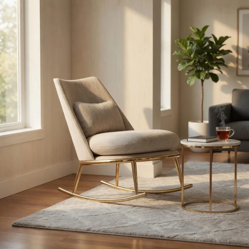 The clean lines and polished base create a stylish silhouette, while the gentle rocking motion adds a relaxing and soothing experience to any setting.