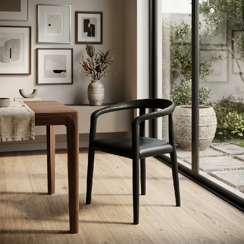 With supportive armrests and a well-balanced structure, these dining chairs offer added comfort while maintaining a clean and elegant look.