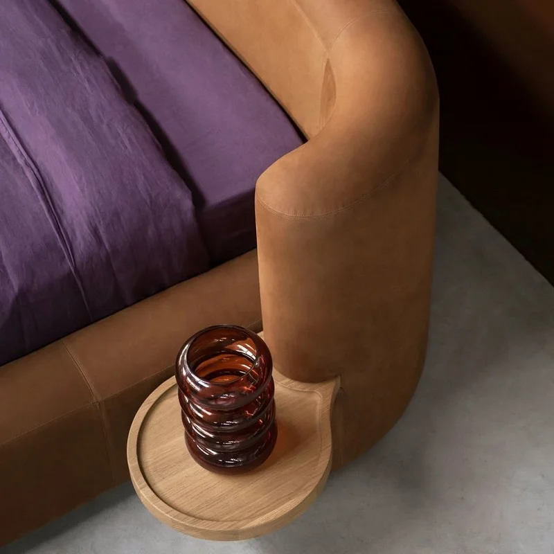The Clara Bed features a sleek upholstered headboard that adds a touch of contemporary luxury while maintaining a clean and timeless aesthetic suitable for any bedroom interior.