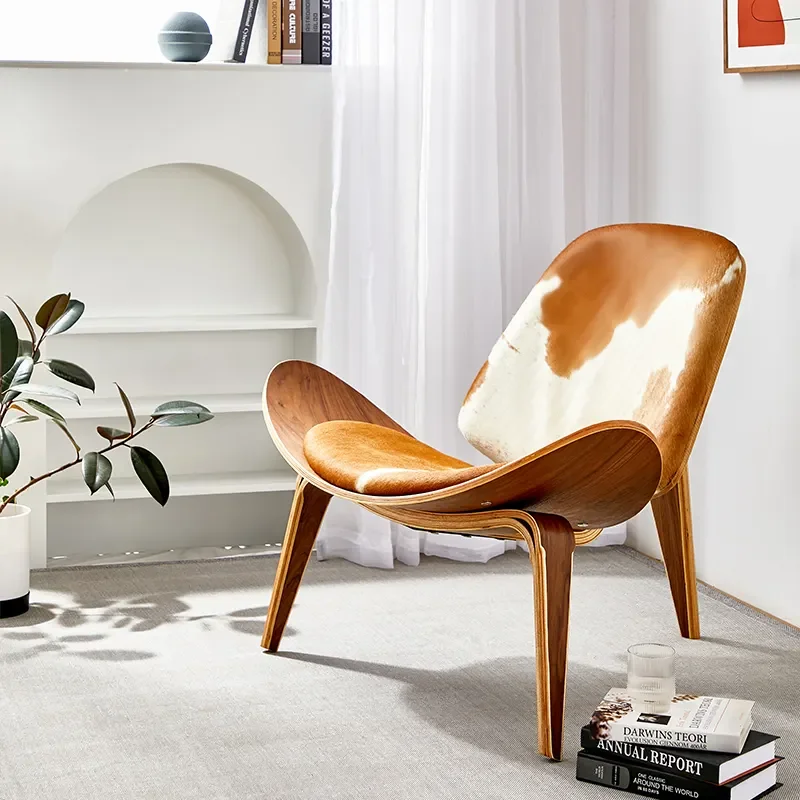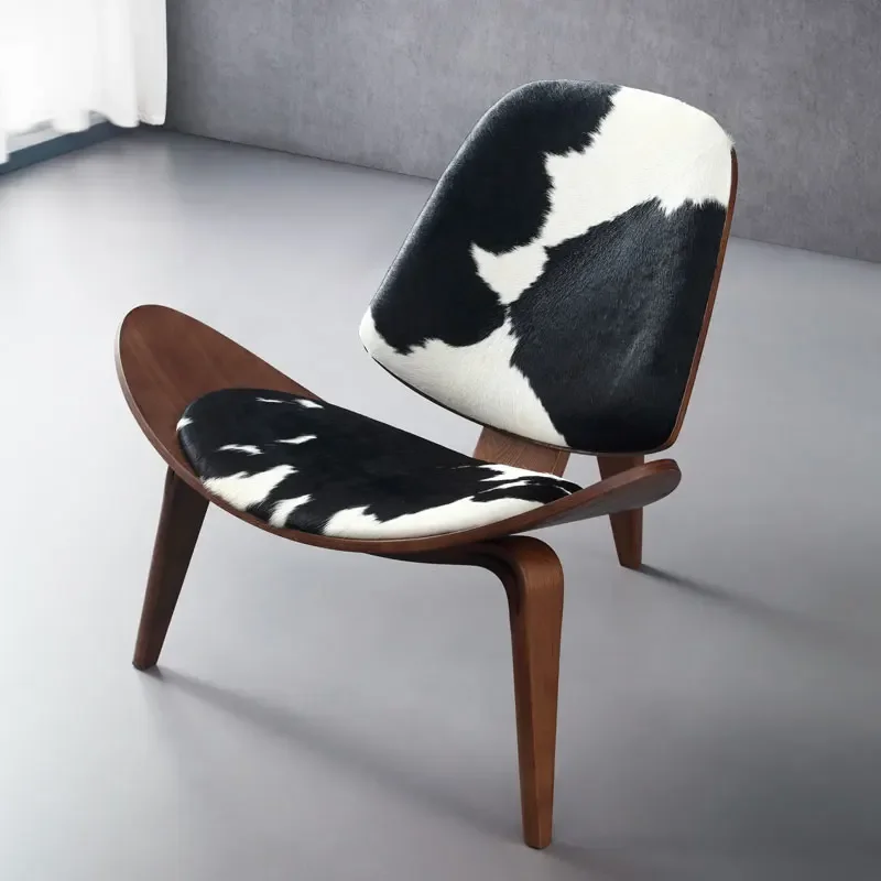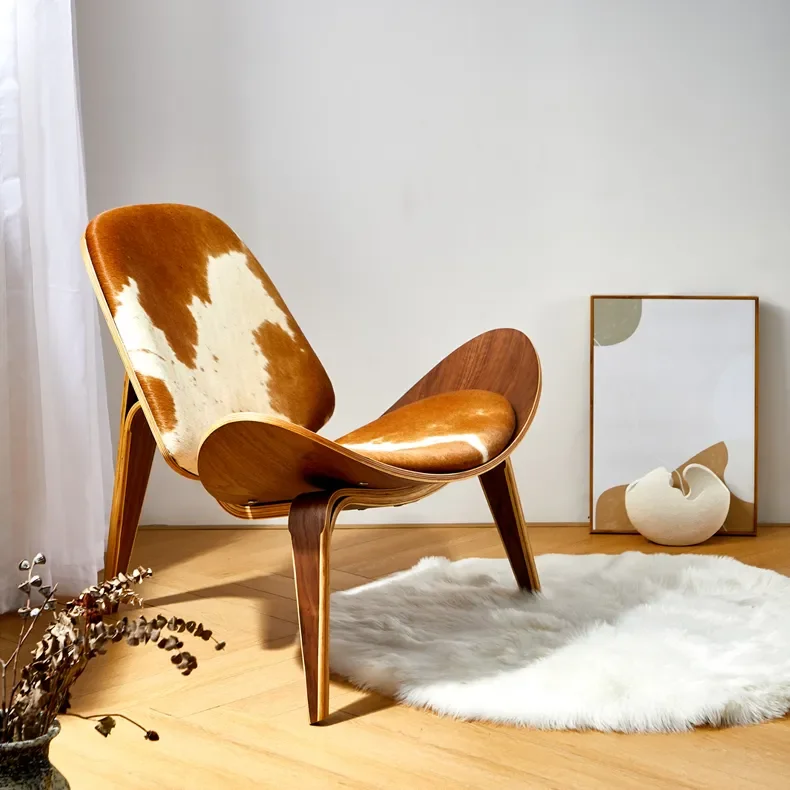 The Cowhide Shell Lounge Chair combines rustic charm with modern design, featuring a unique cowhide shell and sturdy wood frame, perfect for contemporary living spaces, offering both style and personality, presenting a statement seating option that adds a touch of natural beauty and sophistication to any room while providing a cozy and inviting spot for relaxation.