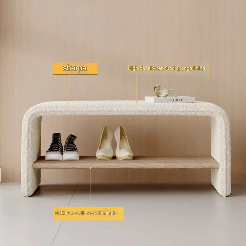 Introducing the Curved Design Bench, a stylish and versatile seating option that adds a touch of elegance to any space. This bench features a gracefully curved design that enhances its aesthetic appeal while offering comfortable seating. The plush fabric & cashmere upholstery provides a soft and luxurious feel, making it an inviting addition to your living room, bedroom, or hallway.DIVERSE PALETTE: