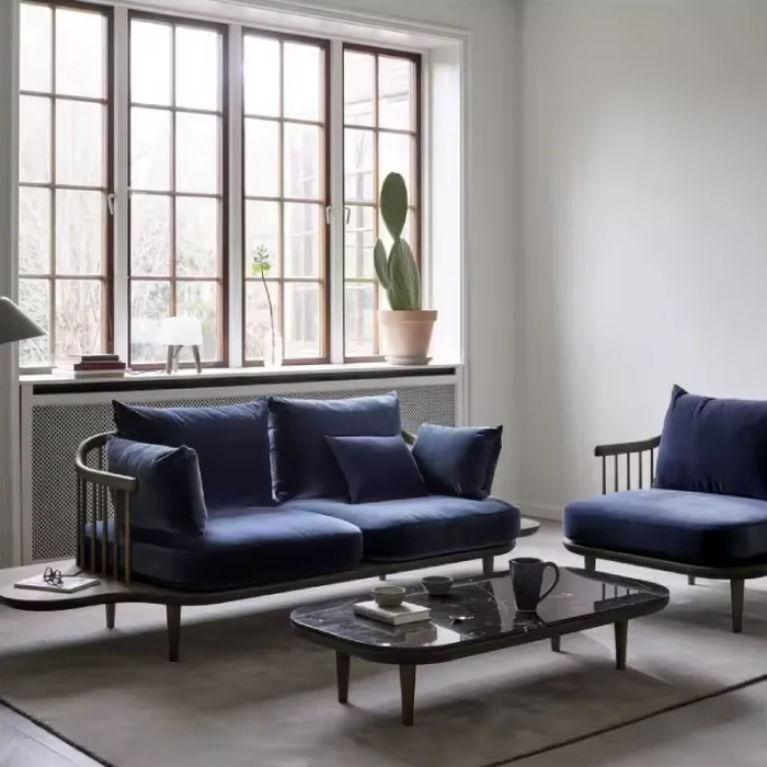 The Fly Sofa with Side Tables embodies contemporary sophistication with its sleek lines and minimalist design. Its clean silhouette and refined details make it a statement piece that elevates any modern living space.DIVERSE PALETTE: