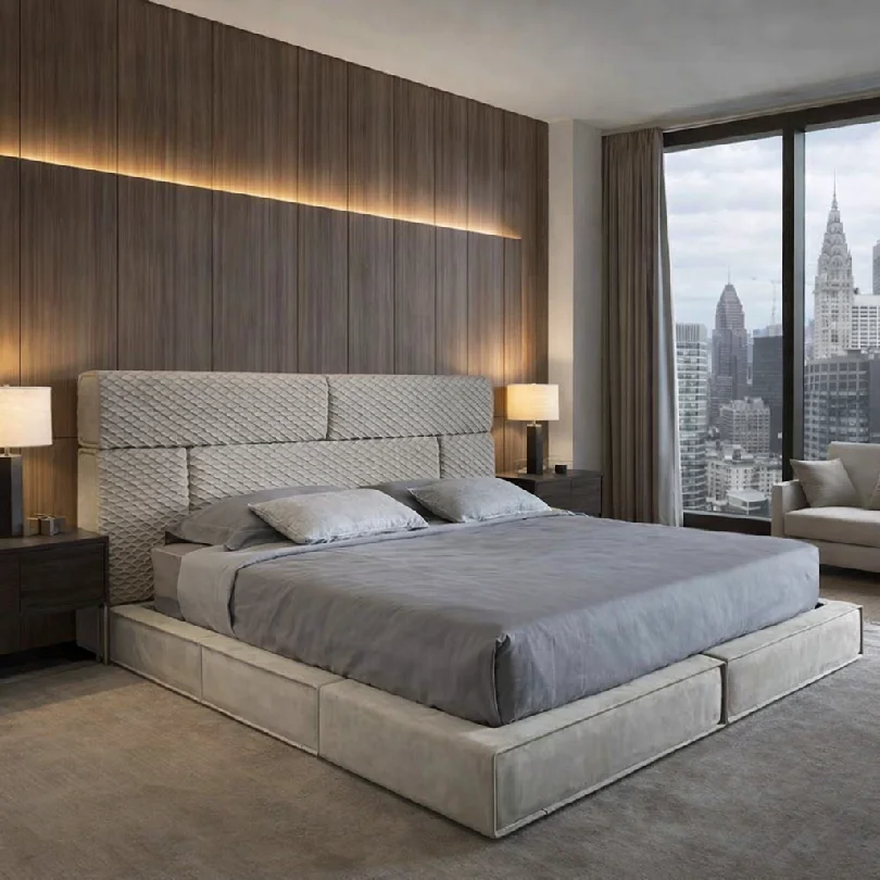 Inspired by soft contours and refined aesthetics, the Italian Hug Bed features a gently enveloping headboard that creates a cozy, intimate atmosphere while maintaining a bold, modern presence.DIVERSE PALETTE: