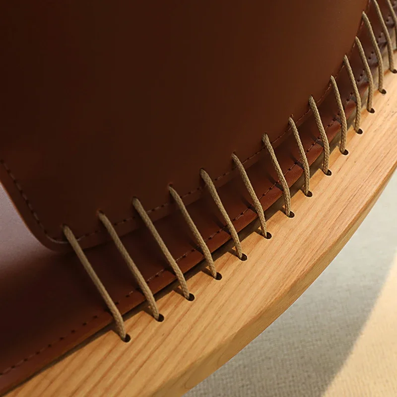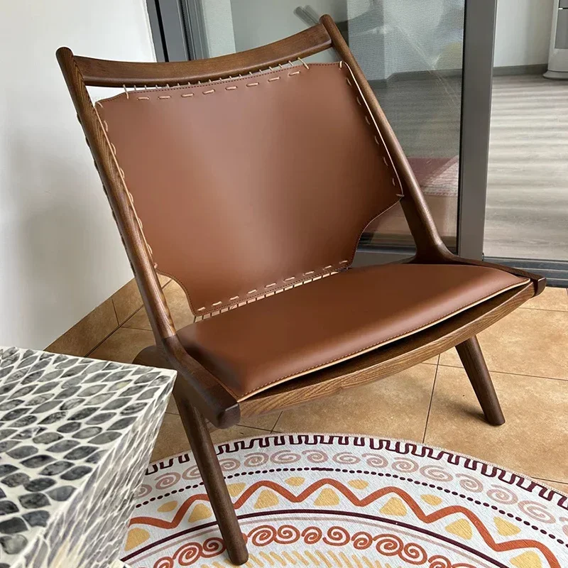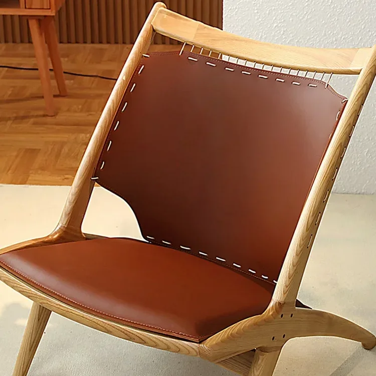 The Krysset Accent Chair is designed with a solid oak frame and premium leather cushioning, providing a blend of robust structural integrity and ergonomic comfort.