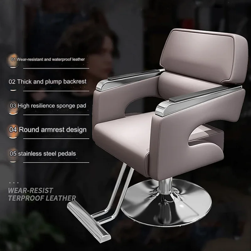 The Waterproof Leather Hydraulic Salon Chair combines durability with functionality, featuring waterproof leather upholstery and a hydraulic metal base, perfect for salon environments, offering both style and practicality, presenting a versatile seating option that provides comfort and support for clients while ensuring easy maintenance and longevity in busy salon settings.