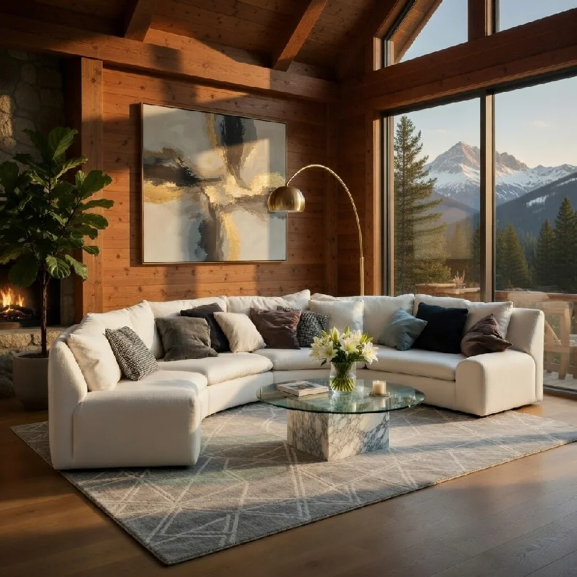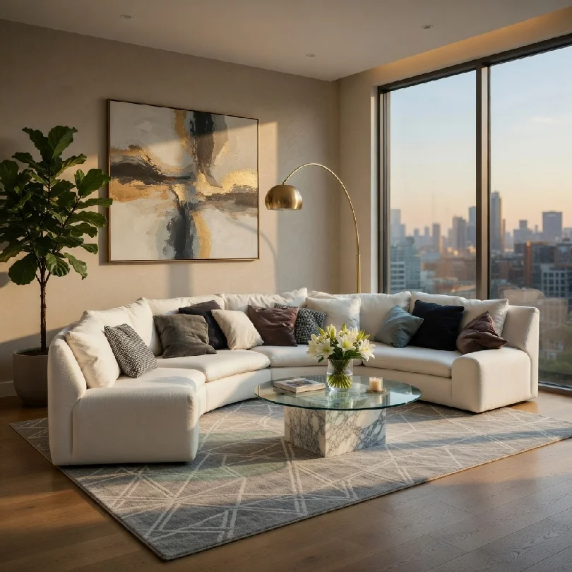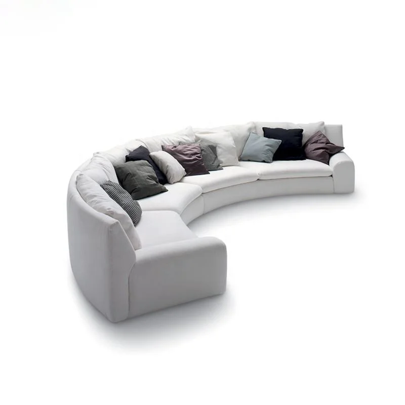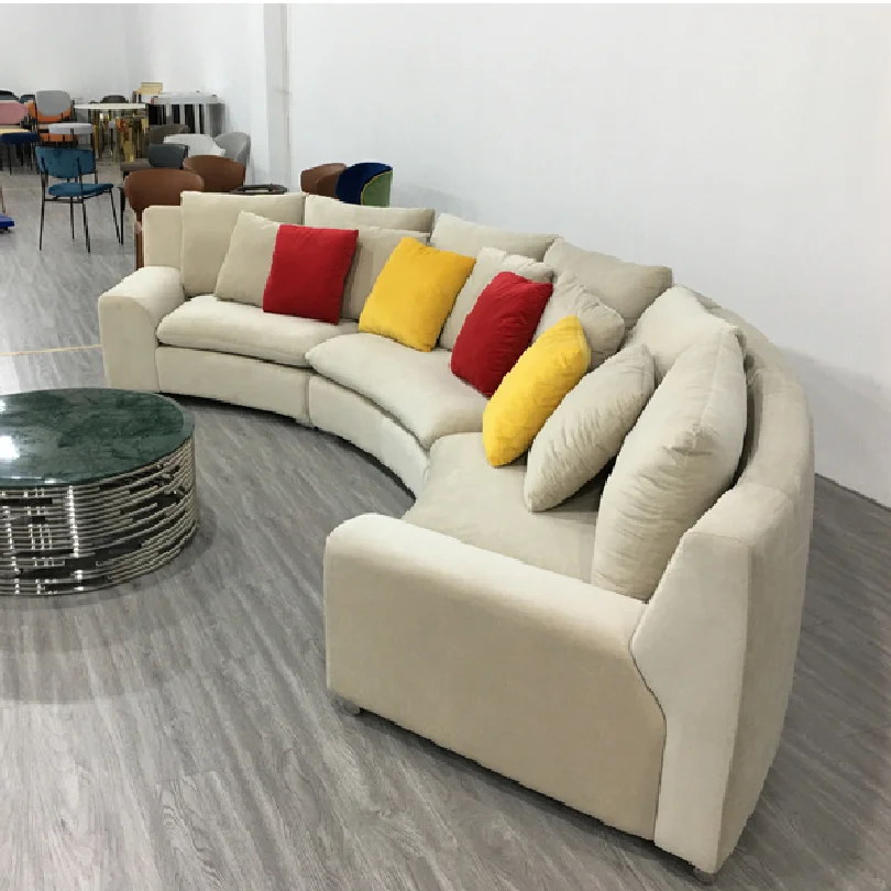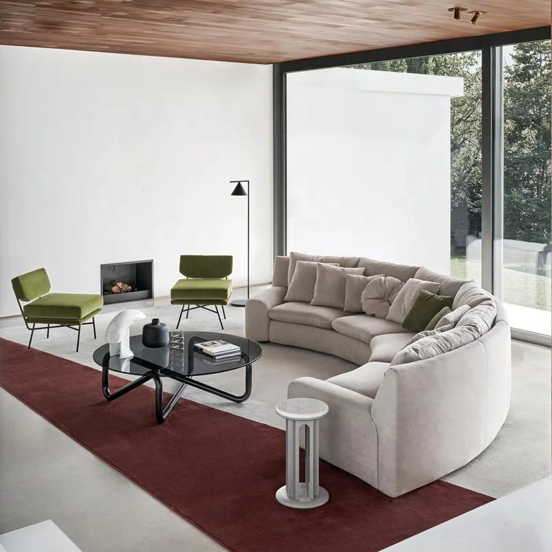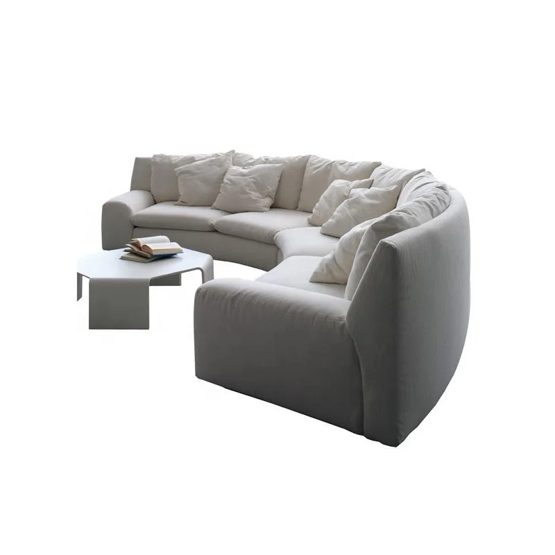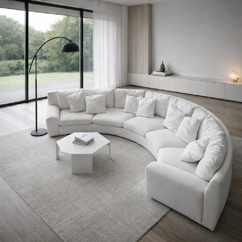 Introducing Luxury Curved Sectional Sofa, a sophisticated seating centerpiece designed to bring fluid elegance and spacious comfort to contemporary living rooms, featuring soft fabric upholstery that enhances both style and relaxation.