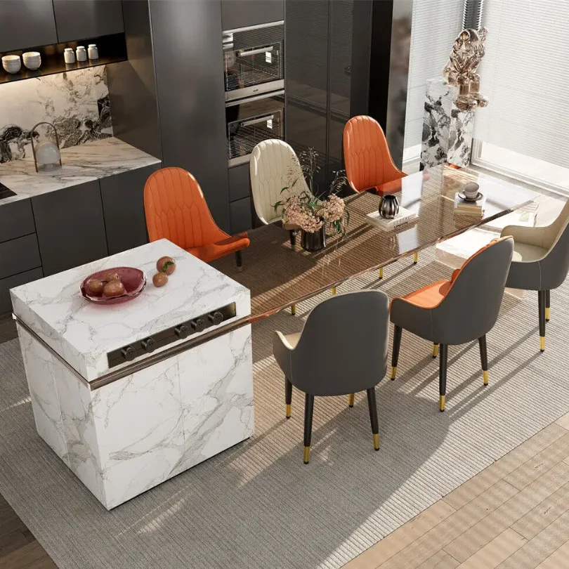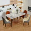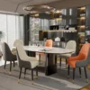 The upholstered backrest and supportive seat provide a comfortable sitting experience, making it ideal for long meals, gatherings, and everyday dining moments.