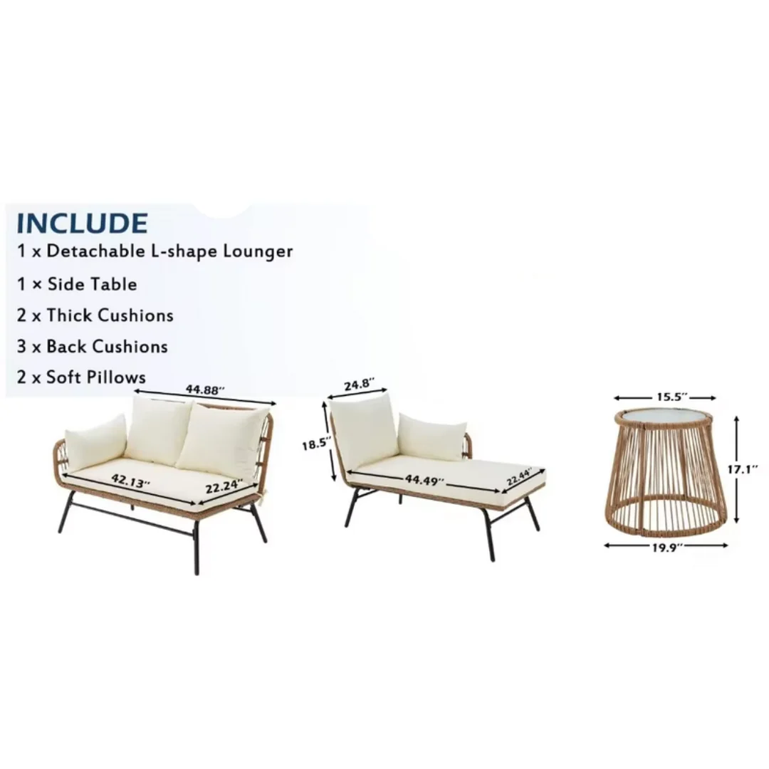 Introducing the Modern Design 3 Pcs Rattan Patio Lounge Set, a perfect blend of style and comfort for your outdoor living space. This set features a sleek, modern design with durable rattan weaving that withstands the elements. Each piece includes plush, high-quality cushions upholstered in weather-resistant fabric, offering exceptional comfort and support for lounging and relaxation.DIVERSE PALETTE: