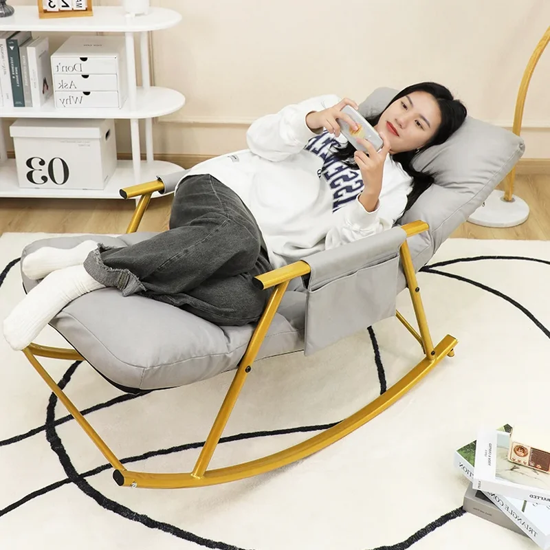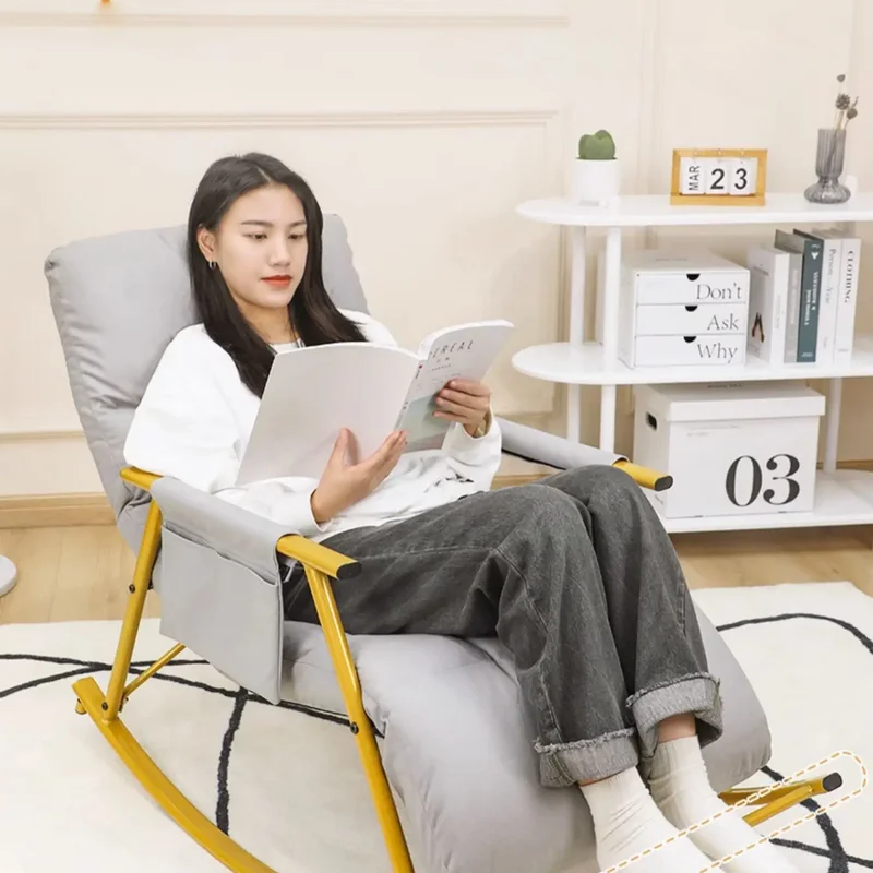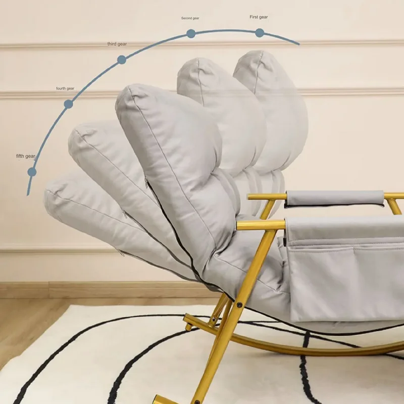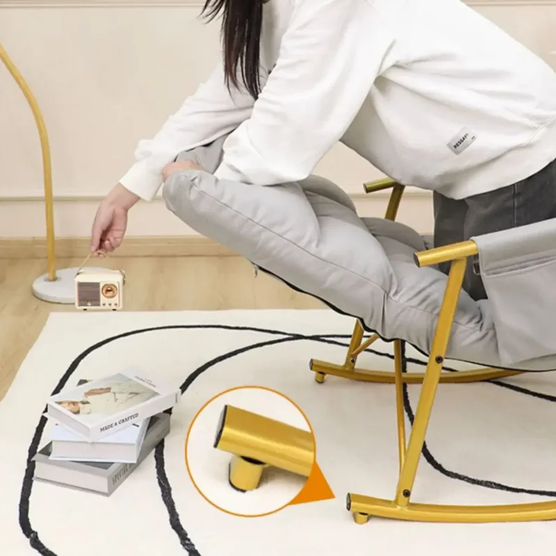 The Modern Meditation Rocking Chair combines contemporary design with serene comfort, featuring a sleek metal frame and soft fabric upholstery, perfect for modern relaxation spaces, offering both style and tranquility, presenting a stylish seating option that adds sophistication and coziness to any meditation area while providing gentle rocking motion for enhanced relaxation and stress relief.