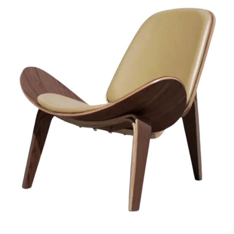 Introducing the Mustard Glow Shell Lounge Chair, a fusion of retro charm and contemporary design, boasting a vibrant mustard-colored shell and a sturdy wood frame, ideal for adding a pop of color to modern living spaces, offering both style and comfort, presenting a statement seating option that exudes warmth and personality while providing a cozy and inviting spot for relaxation.