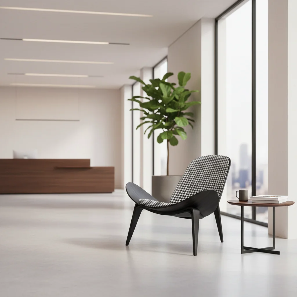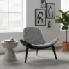 In keeping with the mid-century modern style, the chair includes three tapering legs and curved seats for an elegant shape.TOUGH BY DESIGN: