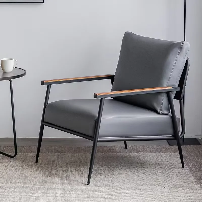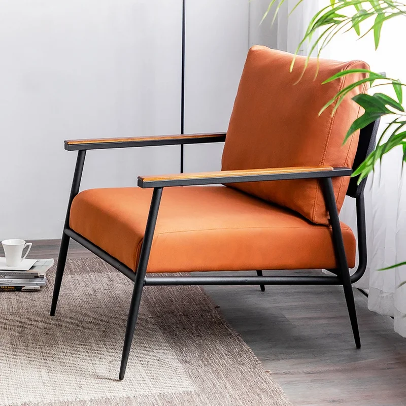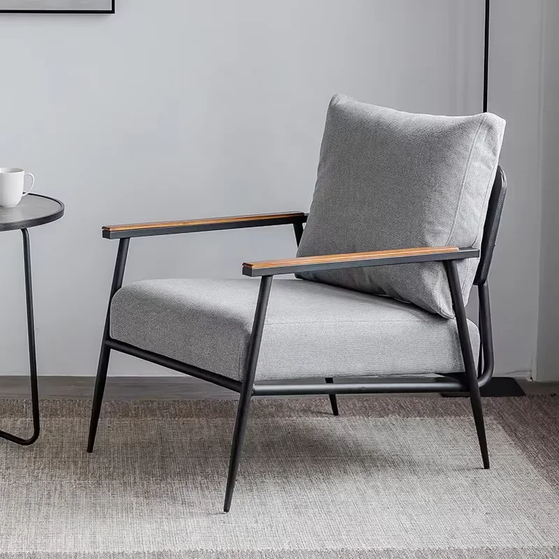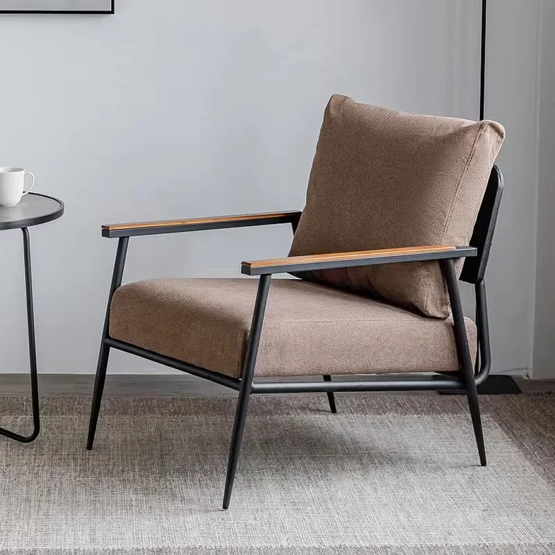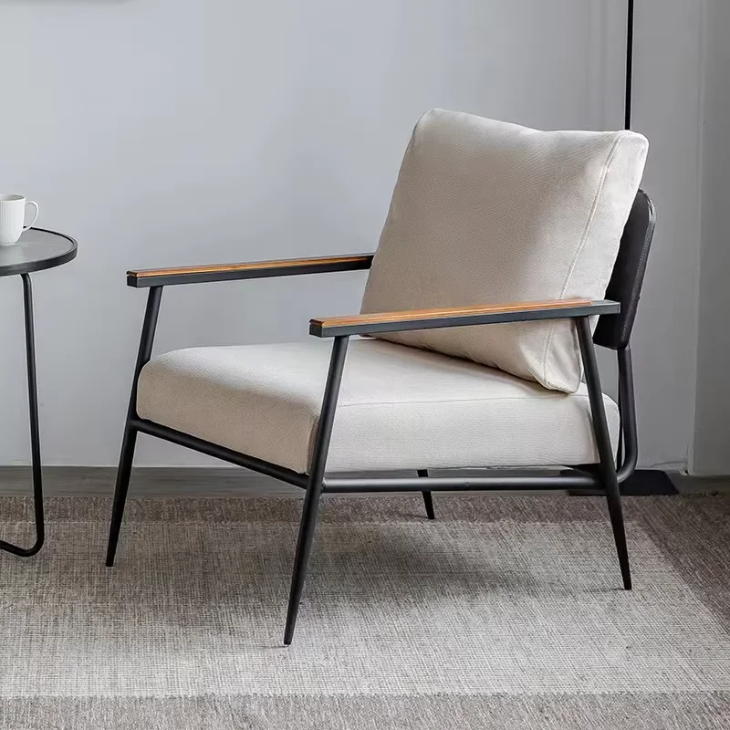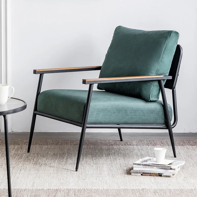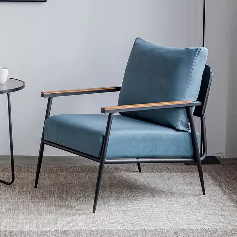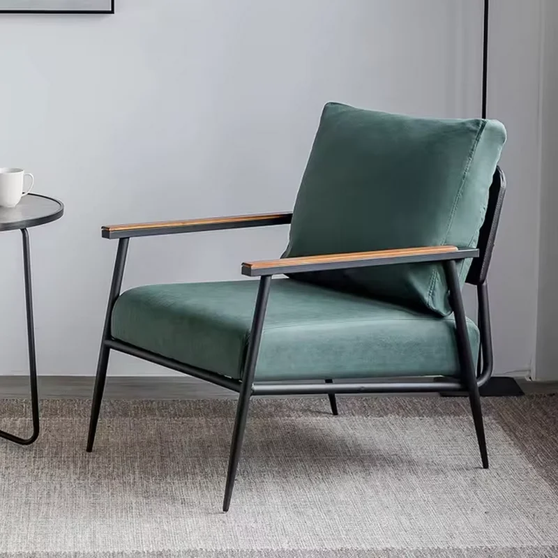 Its distinct timber arms and contoured design provide both support and style, making it the perfect accent piece for your living space.