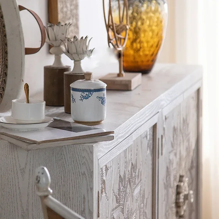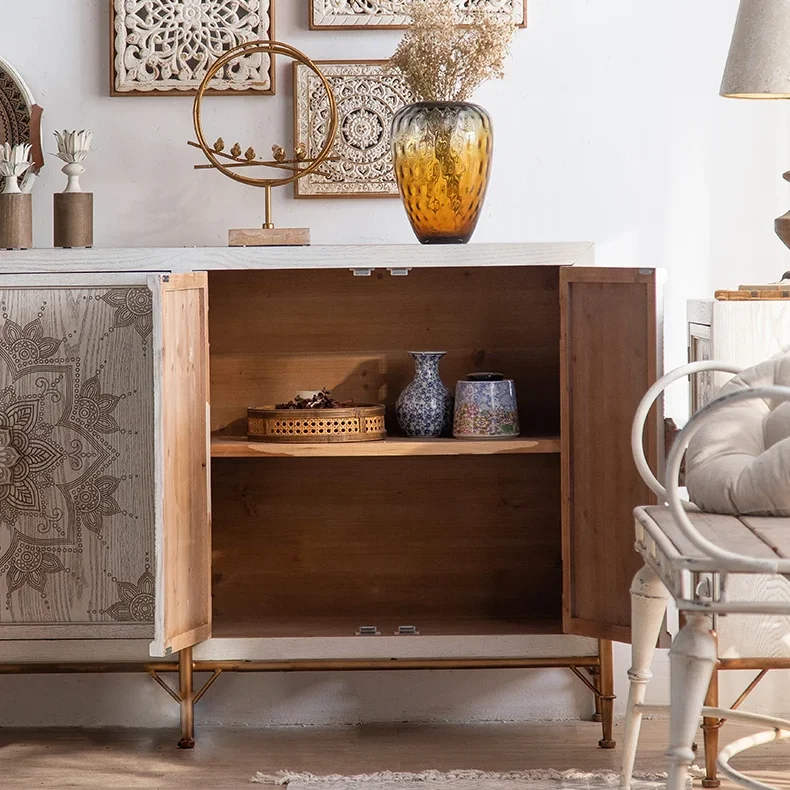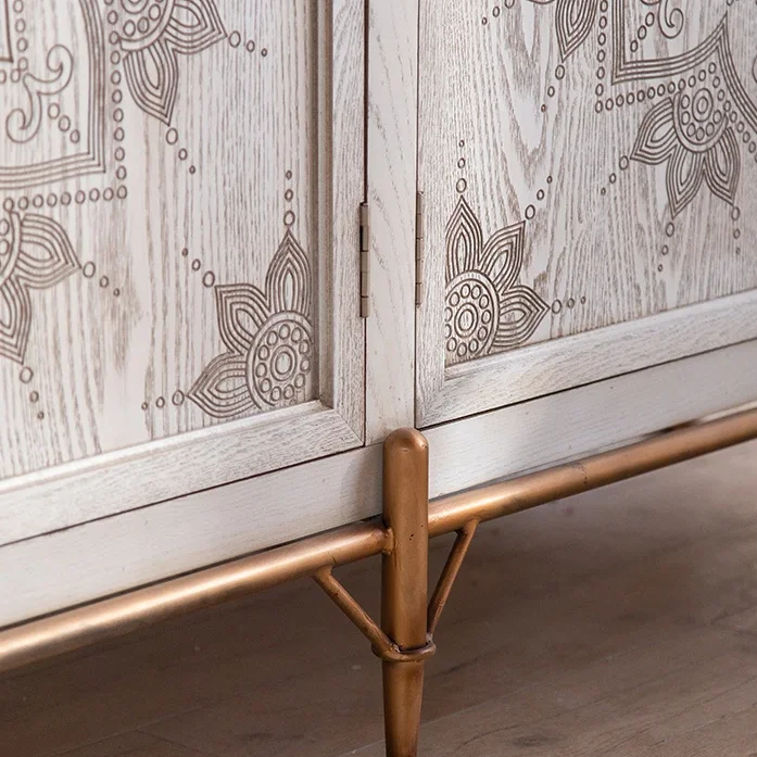 Inspired by the romantic allure of French countryside estates, this sideboard cabinet features intricate carvings, curved edges, and ornate details that pay homage to traditional French craftsmanship. Its vintage-inspired silhouette adds a touch of elegance to any space.DIVERSE PALETTE: